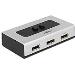 This splitter by Delock receives a Displayport signal from a PC or laptop and splits it to four connected displays. Thereby one Displayport connection can be used to operate four Displayport monitors. The outputs are dual-mode capable (DP++
