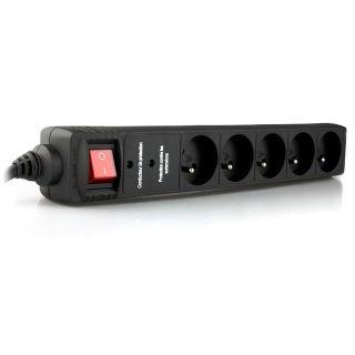 Vestavěná ochrana proti přepětí Určeno pro elektrické zátěže do 16 A Vysoce kvalitní samozhášecí plastové pouzdro Vestavěná tepelná pojistka vlastní obnovy Monitory správné uzemnění zásuvky Monitory správnou práci ochranným obvodem dětská ochrana Specifications Maximum total power load: 250 V AC, up to 16 A, (50 -60) Hz Maximum surge voltage 6000 V, maximum spike current 9000 A, energy 250 Joules Sockets: 5 X French type (German Schuko type compatible) Illuminated power rocker switch German (Schuko) plug 16 A 1.5mm2 power cord, 1.5 m Grounding indicator Self-diagnostic indicator Dimensions: 330 mm x 56 mm x 45 mm Temperature range: (-5…+40) °C Net weight: 0.45 kg |