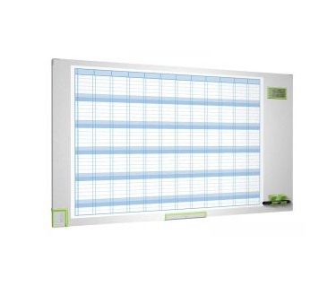 Magnetický povrch stíratelný za sucha Pomocné linie vykreslují 31 řádků a 12 sloupců plus indexový sloupec, umožňují plánovat akce pro každý den roku Zvýrazněné soboty a neděle Integrovaná magnetická stěrka a výsuvný zásobník na popisovače Magnetický držák na popisovač LCD ukazatel času a data Lehká hliníková konstrukce Povrchová úprava dodává elegantní vzhled ušlechtilé nerezové oceli Rozměr: 1040x600x27 mm Dodává se včetně 3 kusů popisovačů, 30 kusů magnetů a montážní sady |