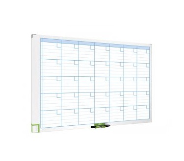 Magnetický povrch stíratelný za sucha Pomocné linie vykreslují v řádcích dny v týdnu a v sloupcích týdny v měsíci Indexové okénko pro zapsání správného data pro každý den Magnetický držák na popisovač Lehká hliníková konstrukce Integrovaná magnetická stěrka Rozměr: 900x600x27 mm Dodává se včetně popisovače, 30 kusů magnetů a montážní sady |