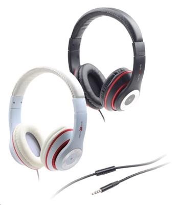 Stereo sluchátka s mikrofonem na kabelu Praktická in-line ovládání pro hlasitost, ztlumení a mikrofon Velké pohodlné náušníky Komfortní, nastavitelná velikost Připojení: jack 2 in 1 - 3,5mm černá barva |