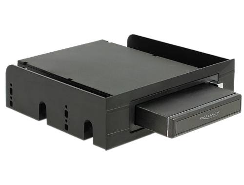 Výměný rámeček Delock může být instalován do 3.5” nebo 5.25” pozice na vašem počítači. Obsahuje pouzdro pro 2.5” SATA hard disky nebo SSD, jež mohou být provozovány přímo v mobilním rámečku přes SATA nebo externě přes USB.