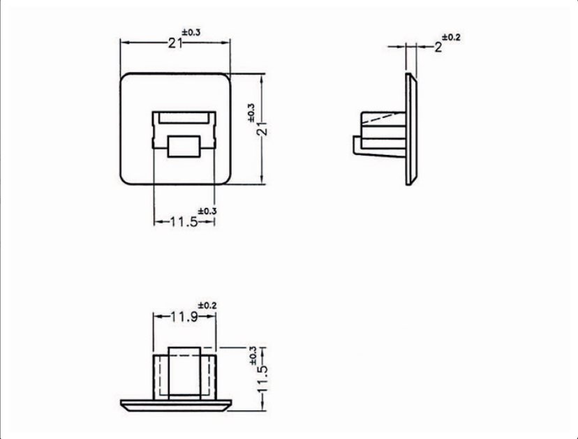 • Rozměry (DxŠxV): cca. 21,0 x 21,0 x 11,5 mm