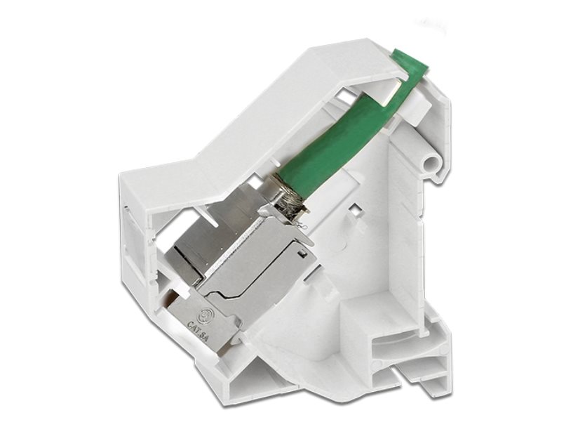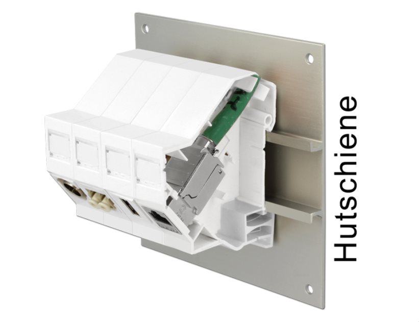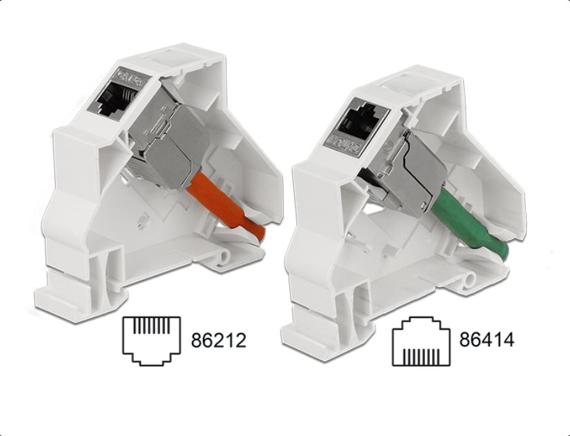 Tento Keystone držák od Delocku může být namontován na DIN lištu. S těmito standardizovanými rozměry je vhodný pro snadné uchycení jednoho Keystone modulu.