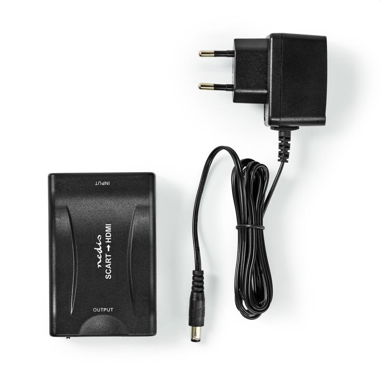 SCART Zásuvka | Výstup HDMI ™ | 1cestný | 1080p | 1.2 Gbps | ABS | Černá Tento převodník ze SCART na HDMI™ slouží k připojení (nadřazeného) zařízení se zástrčkou SCART k televizoru se vstupem HDMI™. Zejména starší zařízení mají výstup SCART. • Vhodné pro připojení zařízení s výstupem SCART k televizoru s HDMI™ • Převádí analogový videosignál SCART na digitální signál HDMI™ • Volicí přepínač rozlišení obrazu (720P nebo 1080P) • Synchronizuje videosignál a audiosignál, aby docházelo k minimálním prodlevám • Plug & Play: nejsou zapotřebí žádné ovladače ani instalace • Napájeno přes USB Specifikace produktu Šířka 88 mm Výška 25 mm Hloubka 58 mm Hmotnost 75 g Barva Černá Materiál ABS Směr přenosu dat 1cestný Typ balení Box Maximální rozlišení 1080p Podporovaná rozlišení 720p 1080p Vstupní proud 1.0 A Typ zdroje napájení Napájení z USB Vstupní napětí 5 V DC Vstupní napájecí konektor(y) USB Spotřeba elektrické energie v provozním režimu 5.0 W Poměr stran 16:9 Standardní rozlišení Full HD Zástrčka USB Typ zařízení Převodník HDMI ™ Výstupní konektor Výstup HDMI ™ Podporovaná technologie Full HD NTSC PAL SECAM Způsob ovládání Automatický Vstupní konektor SCART Zásuvka Taktovací frekvence 340 MHz Barevné formáty videa HDMI™ 24 bitů Deep Color 30 bit 36 bitů Maximální šířka pásma 1.2 Gbps Spotřeba energie v pohotovostním režimu 2.0 W Počet produktů v balení 1 kusů Podpora zvuku Ano |