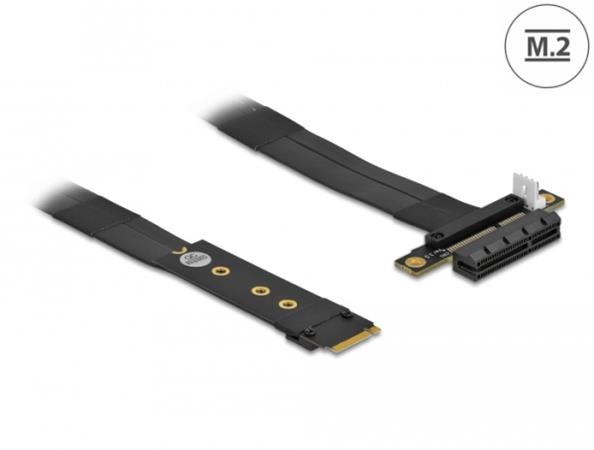 Tento adaptér značky Delock lze použít k připojení karty PCI Express k slotu M.2. Ohebný kabel umožňuje prostorově úspornou instalaci do skříně počítače. Bude-li třeba, přídavný napájecí konektor může dodávat kartě PCIe napětí 12 V.