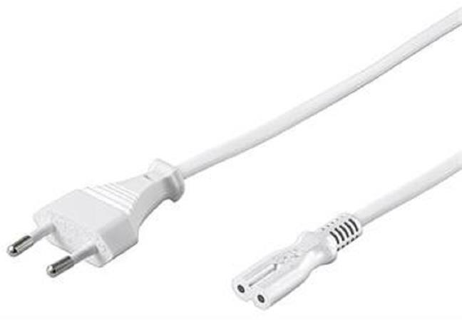 Napájecí kabel v bílém provedení pro napájecí adaptér. Dvoužilový kabel je zakončený koncem v podobě ležaté osmičky.