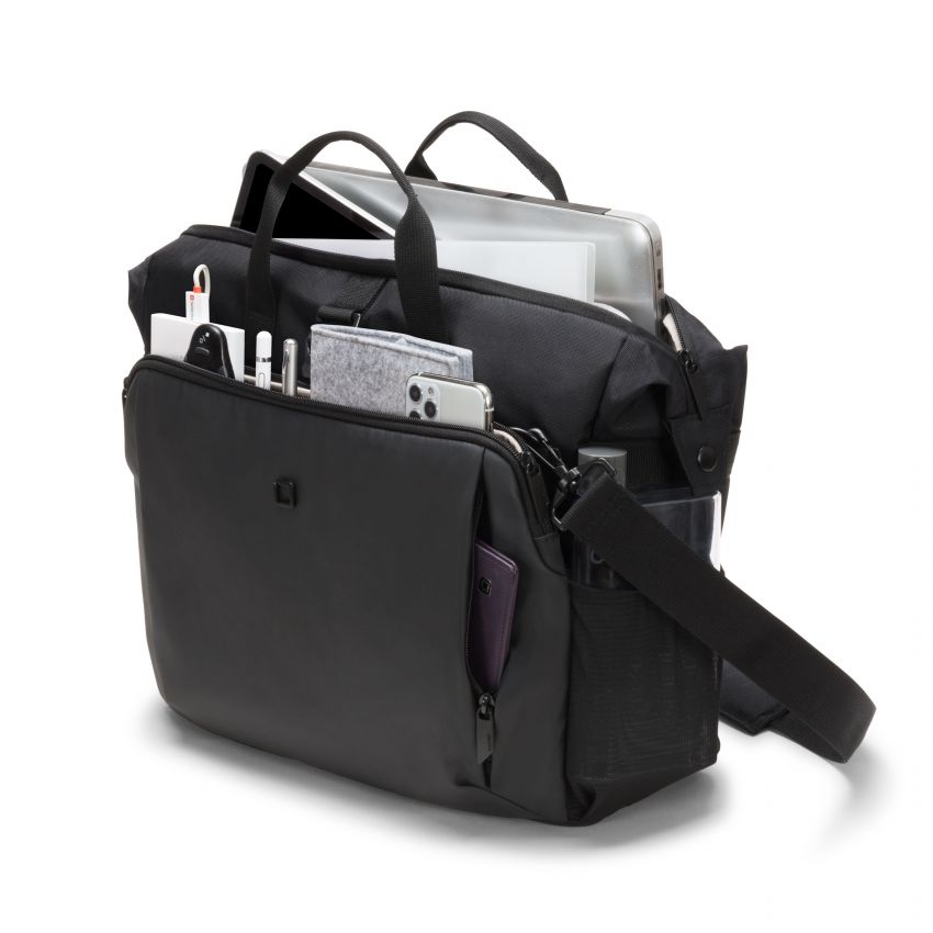 The Eco Top Traveller GO offers ideal protection for laptops. The fitall system separating wall in the notebook compartment lies protectively across your notebook and fits automatically to sizes from 13 to 15.6". The slip pocket provides reliable protection for tablets up to 12.9". The spacious main section is divided so that documents and accessories can be stored separately. Open expandable compartment for active gear such as sport shoes, helmet, yoga mat, etc. including elastic mesh side pockets and metal hook for fixation. The front pocket has practical compartments so you can organise mobile accessories like smartphone, pens or chargers. There is a document compartment at the back for easy storage of documents. Carry the bag comfortably with the handles or use the adjustable, padded shoulder strap. The bag is made of water-repellent material to protect the contents even on rainy days. The Eco Top Traveller GO is therefore perfect for you if you are always on the go and want to support the recycling of PET bottles with an eco-friendly bag. Made of 28 recycled PET bottles Padded notebook compartment with fitall system Slip pocket for tablets up to 12.9" Spacious main section with compartments for documents and accessories Front pocket with storage space for mobile accessories Open expandable compartment for active gear Mesh pocket for water bottle or umbrella inside the bag Document compartment on the back Adjustable, padded shoulder strap Water-repellent material Color black Material 600 D rPET Gucci Polyester Max. Device Measurements (mm) 385 x 35 x 265 mm Product Measurements (mm) 420 x 120 x 310 mm Weight 0.82 kg Identifikační a kontaktní údaje výrobce DICOTA GmbH Fabrikstrasse 18 73277 Owen Germany Phone: +49 7021 72508 0 info@dct.group |