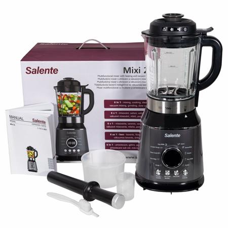Nádoba s obsahem 2L Teflonové dno nádoby 2L Vaření (10 programů) Pomalé vaření 85°C Vaření v páře Mixování Vakuové mixování (s příslušenstvím Mixi VA) Mletí kávy, ořechů, … (s příslušenstvím Mixi GR) Kuchařka v balení Vařící a vakuovací mixér Už nemusíte vařit omáčky nebo krémové polévky v hrnci a používat tyčový mixér. Salente Mixi 2L zvládne obojí a vy nemusíte stát u sporáku. Necháte ho vařit a odejdete pryč :-) Stolní mixér Salente Mixi 2L je multifunkční vysokorychlostní mixér, který má mimo mixování i funkci vaření, vaření v páře, pomalé vaření a vakuové mixování. Uvaříte v něm svíčkovou, krémovou polévku, klasickou polévku, cizrnovou kaši a připravíte i marmeládu nebo sojové mléko. Mixér má 10 automatických programů: sójové mléko, krémová polévka, pomalé vaření 85°C, kaše, klasická polévka (bez mixování), dětské jídlo/džus, smoothie, koktejl, ořechové mléko a program pro mixování (bez vaření). Nádoba s obsahem 2L má teflonové dno a tak se vám při vaření omáčka, nebo marmeláda nepřipálí. Bohaté příslušenství Pokud zakoupíte ke stolnímu mixéru Mixi 2L i příslušenství Salente Mixi VA, stane se z Mixi 2L vakuový mixér a získáte další funkci vakuového mixování. Zakoupením příslušenství Salente Mixi GR pak získáte i funkci mletí tvrdých potravin: kávy, ořechů, ledu a výrobu frappé. Klíčové vlastnosti Bezpečná pojistka uzávěru nádoby / parní ventil / 6 nožů ve dvou vrstvách Dva režimy teploty vaření / teflonové dno varné nádoby / program pomalého vaření Menu s 10-ti programy / vaření v páře Bezpečná pojistka uzávěru nádoby Parní ventil 6 nožů ve dvou vrstvách Dva režimy teploty vaření Teflonové dno varné nádoby Program pomalého vaření Menu s 10-ti programy Vaření v páře Recepty Součástí manuálu je i výběr z receptů, které můžete vyzkoušet. Sójové mléko, cizrnová kaše, svíčková a další recepty. Budeme rádi, když se s námi podělíte o vaše recepty a zkušenosti se Salente Mixi 2L na našem Facebooku. Za každý zveřejněný příspěvek získáte dárek. Sójové mléko Cizrnová kaše Svíčková Technické specifikace Počet nožů: 6 (dvě vrstvy) Výkon motoru: 1 000W Rychlost otáček: 22 000 ot/min Výkon ohřevu: 800W Rozměry: 49×19cm Hmotnost: 5,4kg Obsah balení Salente Mixi 2L, včetně 1ks mixovací varné nádoby 2L Čistící kartáč Odměrka Pěchovadlo Košík pro vaření v páře Manuál |