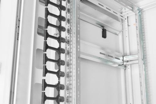 Řada Varioflex-N byla navržena a vyrobena pro vysoké nároky IT infrastruktury. Nabízí maximální stabilitu a flexibilitu v široké škále scénářů použití. Profilové lišty 483 mm (19") s vysokou nosností až 1200 kg Modulární, otevíratelné základní šasi s odnímatelnými záslepkami Velkoryse dimenzované vertikální kabelové kanály s vedením kabelů a krytem zabudovaným do čelního panelu Otočná klika s profilovým cylindrickým zámkem incl. key na předních a zadních dveřích Stupeň krytí IP20 Síťové skříně řady Varioflex-N byly navrženy a vyrobeny pro optimální kabeláž síťových prvků. Chytré optimalizace nabízejí stabilitu v souladu s trhem s maximální flexibilitou. Přední dveře, tvořené celokovovým rámem s tvrzeným sklem o tloušťce 4 mm, a dvoukřídlé ocelové zadní dveře jsou vybaveny otočnou klikou včetně profilového půlválcového zámku (DIN 18 252 (EN 1303)). Obě boční stěny lze uzamknout a odstranit. Uvnitř skříně jsou integrovány čtyři zalomené, pozinkované 19" profily, které jsou na několika místech spojeny se základním rámem skříně pomocí hloubkových tyčí. Hloubka je nastavitelná a mají označení příslušné regálové jednotky, které lze číst v obou směrech. Modulární základní šasi, které lze otevřít pomocí šroubovaných záslepek, nabízí dostatek místa pro kabely všeho druhu. Dále jsou v horní a dolní části skříně dva kabelové přívody s kartáči. Všestranné vlastnosti síťové skříně jsou dokonale doplněny velkorysými vertikálními kabelovými kanály s plastovými kroužky pro vedení kabelů a krytem, zabudovanými do přední části. TECHNICKÉ DETAILY Stupeň krytí IP20 Vchodové dveře jsou tvořeny celokovovým rámem s tvrzeným sklem o tloušťce 4 mm Ocelové zadní dveře, dvojité sklopné Otočná klika s profilovým cylindrickým zámkem incl. key na předních a zadních dveřích Úhel otevření dveří 120° Boční části lze uzamknout a vyjmout vč. 4 nivelačních nožiček, které jsou již namontovány pod korpusem Profilové lišty 483 mm (19") namontované na přední a zadní straně skříně, pozinkované Profilové lišty 483 mm (19") jsou spojeny s hlavním rámem hloubkovými lištami ve 4 bodech vlevo a vpravo Profilové lišty 483 mm (19") jsou hloubkově nastavitelné a mají označení pro regálové jednotky Profilové lišty 483 mm (19") s vysokou nosností až 1200 kg Montážní hloubka pro komponenty min. - max.: 290-770 mm Střecha je nastavena tak, aby se do ní vešla ventilátorová jednotka a připojený odnímatelný kryt Modulární, otevíratelné základní šasi s odnímatelnými záslepkami Velkoryse dimenzované vertikální kabelové kanály s vedením kabelů a krytem zabudovaným do čelního panelu Kabelové průchodky v základně a střeše s kartáčovou lištou vlevo a vpravo (70 x 316 mm) Četné zásuvné uzemňovací body pro zemnící kabely (konektor Faston) Dodáváno kompletně smontované Rozměry produktu (V x Š x H): 2022,6 x 800 x 1000 mm Typ skříně: Síťová skříň Barva: světle šedá, RAL 7035 Hloubka: 1000 mm Přední dveře: Skleněné dveře, jednoduché otevírání Nosnost: 1200 kg Zadní dveře: Ocelové dveře, zavřené, dvojité otevírání Boční panely: Obě strany Jednotky: 42 Šířka: 800 mm Třída ochrany IP: IP20 Namontované: ano |