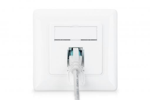 Síťová zásuvka CAT 6A třídy EA, stíněná 1x RJ45, LSA, čistě bílá, zapuštěná montáž, 8 směr