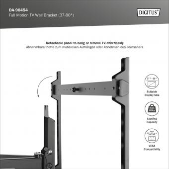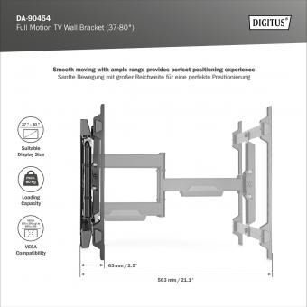 Plně pohyblivý TV nástěnný držák 37-80", 60 kg zatížení max.