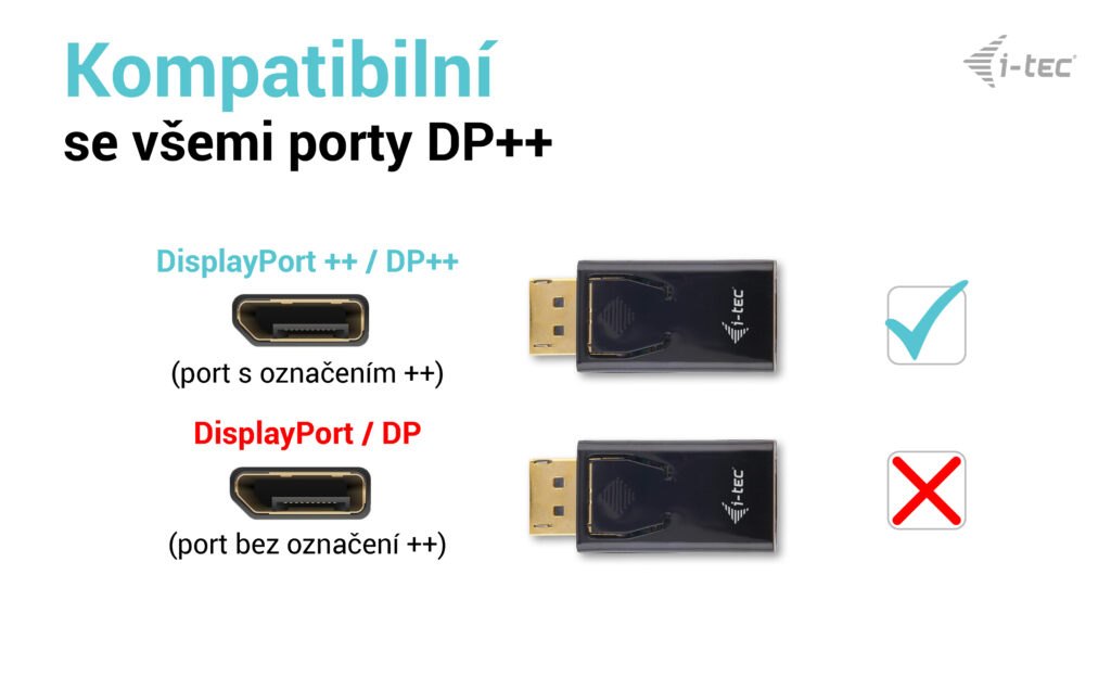 i-tec Passive DisplayPort to HDMI Adapter (max 4K/30Hz) Popis Rozšiřte svou pracovní plochu o externí monitor HDMI prostřednictvím portu DisplayPort. Tento adaptér podporuje rozlišení až 4K/30 Hz a je vhodný pro použití se všemi zařízeními vybavenými portem DisplayPort++ (POZNÁMKA: adaptér nebude fungovat, pokud bude připojen k portu, který není označen „DP++“) . Použití je velmi jednoduché: stačí připojit adaptér k portu DP počítače, připojit jej k displeji pomocí konektoru HDMI a můžete jej okamžitě začít používat. Ovladač se nainstaluje automaticky ze systému. V případě DisplayPortu s DisplayLinkem bude maximální rozlišení 4K / 30 Hz (např. dokovací stanice i-tec nebo videoadaptéry s číslem produktu začínajícím CAxxxxxxxxx). V případě připojení DisplayPort s rozhraním Thunderbolt bude maximální rozlišení 4K / 30 Hz (např. dokovací stanice i-tec nebo videoadaptéry s číslem produktu začínajícím na TBxxxxxxxxx). V případě připojení DisplayPort s USB-C bude maximální rozlišení FHD (1080p) / 60 Hz (např. dokovací stanice i-tec nebo videoadaptéry s produktovým číslem začínajícím na C31xxxxxxxxx). Specifikace 1x pasivní adaptér DisplayPort na HDMI Video port: 1x HDMI Rozlišení: 1 monitor – 1x HDMI › až 4K/30 Hz* Rozměry produktu: 51 x 23 x 10 mm Hmotnost produktu: 11 g Hardwarové požadavky: Zařízení s volným portem DisplayPort podporujícím DP++ * DisplayPort s rozhraním ThunderboltTM: adaptér umožní maximální rozlišení 4K/30 Hz DisplayPort s rozhraním DisplayLink: adaptér umožňuje maximální rozlišení 4K/30 Hz. DisplayPort s rozhraním USB-C: adaptér umožňuje maximální rozlišení FHD/60 Hz. Rozlišení a obnovovací frekvence mohou být ovlivněny také kvalitou a výkonem připojeného monitoru. |