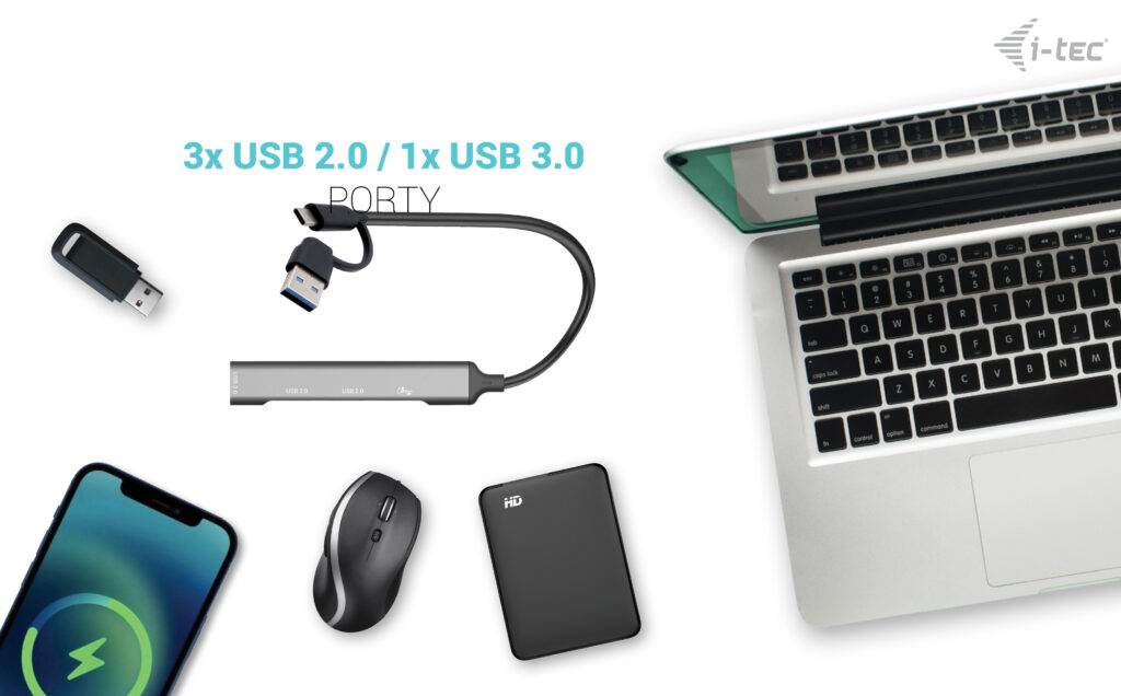 I-Tec USB-A/USB-C Metal HUB 1x USB-C 3.1 + 3x USB 2.0