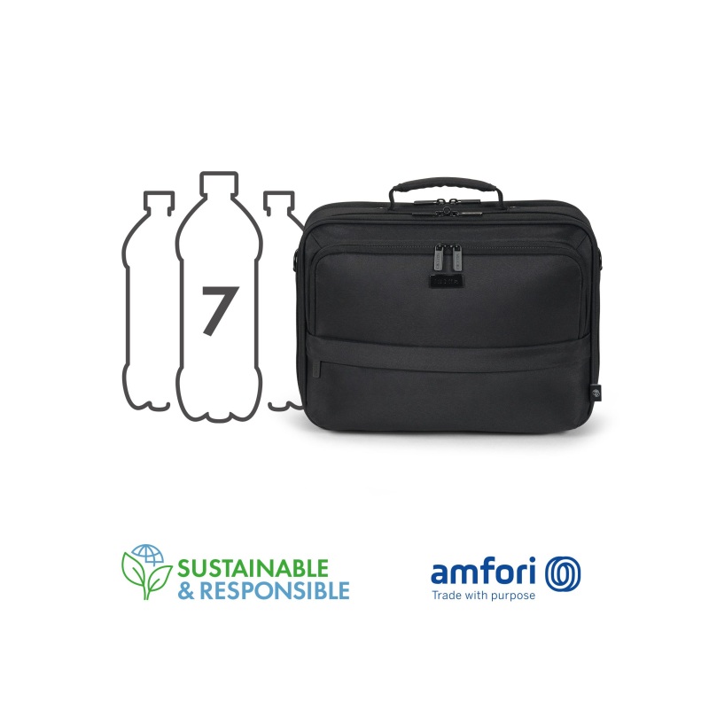 Tato taška kombinuje bezpečnost a funkčnost s uzamykatelnou, polstrovanou přihrádkou na notebook, která nabízí optimální ochranu díky zesílenému rámu. Přední kapsa je speciálně navržena pro mobilní příslušenství a kapsa na zip nabízí úložný prostor pro síťový adaptér a kabel. Skrytá přihrádka na GPS tracker umožňuje mít tašku stále pod dohledem, zatímco kapsa na zip s RFID blokátorem chrání osobní data před neoprávněným přístupem. Důležité dokumenty lze bezpečně uložit do kapsy na dokumenty na zadní straně, zatímco polstrovaný ramenní popruh umožňuje pohodlné nošení. Popruh na vozík usnadňuje připevnění tašky ke kufru. Taška je doplněna vodoodpudivým materiálem, který spolehlivě ochrání obsah před povětrnostními vlivy. Vyrobeno ze 7 recyklovaných PET lahví Uzamykatelná a polstrovaná přihrádka na notebook se zesíleným rámem Přední přihrádka s kapsami na mobilní příslušenství Kapsa na zip pro síťový adaptér a kabel Skrytá přihrádka pro GPS tracker Kapsa na zip s RFID blokátorem Kapsa na dokumenty na zadní straně Polstrovaný ramenní popruh Upevňovací popruh na vozík Vodoodpudivý materiál Více informací Číslo položky D32031-RPET Barva Černá Objem v litrech 0 Materiál 300D 100% recyklovaný PET polyester Záruka Životnost / 30 let EAN 7640239421066 Max. Rozměry zařízení (mm) 420 x 40 x 300 mm 16,54 x 1,57 x 11,81 palce Rozměry produktu (mm) 430 x 45 x 310 mm 16,93 x 1,77 x 12,2 palce Hmotnost 1,09 kg / 2,4 lb Identifikační a kontaktní údaje výrobce DICOTA GmbH Fabrikstrasse 18 73277 Owen Germany Phone: +49 7021 72508 0 info@dct.group |