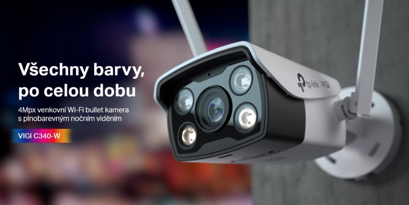 VIGI C340-W(4mm) je 4 megapixelová venkovní WiFi bullet kamera značky TP-Link s fixním objektivem 4 mm, bílým světlem a IR přísvitem do vzdálenosti 30 m, ethernetovým portem a 802.11b/g/n WiFi s dvěmi fixními anténami. Kamera má max. rozlišení 2560 × 1440 px (při 30 fps), pozorovací úhel 79°, 2 nezávislé streamy, krytí IP66, digitální WDR snímač, obousměrné audio (mikrofon i reproduktor), slot na microSD kartu a podporu ONVIF a kodeku H.264(+) a H.265(+). Kamera díky větší citlivosti podporuje tzv. Full-Color barevný obraz během celé noci.