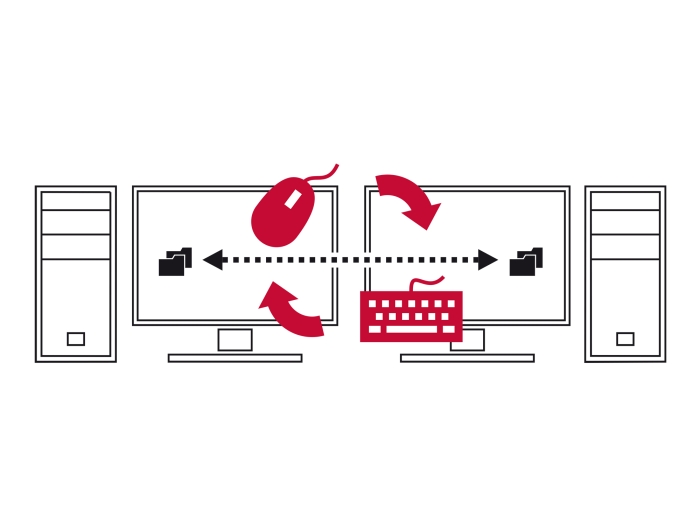 Tento kabel od Delocku může být použit pro připojení dvou počítačů. Tak je možné přenášet data v obou směrech s rychlostí USB 5 Gbps. Navíc může být pro oba počítače (KM switch) použita jedna myš a jedna klávesnice. Příslušný počítač můžete aktivovat jen přesunutím kurzoru z jednoho displeje do druhého. Kompatibilní se systémy Mac a Windows Kabel s integrovaným software SmartLink je teď k dispozici pro počítače a laptopy se systémem Windows, ale i pro zařízení Apple s operačním systémem Mac OS. Kromě toho lze pomocí rovněž vestavěného Go!Bridge snadno a rychle kopírovat soubory mezi oběma počítači. Rozsáhlá konektivita Díky speciálně tvarovanému adaptéru lze tento kabel značky Delock rychle a snadno připojit k zásuvce s rozhraním USB Typu-A. Takže jej lze snadno připojit k novým zařízením se zásuvkou USB Type-C™ a starším zařízením, která mají jen konektor USB Typu-A. Adaptér se nachází přímo na obou koncích kabelu, a proto se nemůže ztratit. Technické detaily Konektor: 2 x USB 5 Gbps USB Type-C™ samec Adaptér: 1 x USB 5 Gbps USB Type-C™ samice 1 x USB 5 Gbps Typ-A samec Chipset: OTI7300 Klávesnice a myš může být použit pro oba počítače Přepínání mezi počítače pomocí pohybem kurzoru nebo horkých kláves (nastavitelné) Přenos dat je možný oběma směry Ovladače jsou integrované v kabelu Kabel s textilním stíněním Pozlacené kontakty Barva: černá Délka včetně konektorů cca. 2 m Systémové požadavky Mac OS 12.4 nebo vyšší Windows 10/10-64/11 Zařízení s volným portem USB Type-C™ nebo volný port Thunderbolt™ 3 nebo Thunderbolt™ 4 nebo Jeden volny USB Typ-A port Obsah balení USB 5 Gbps datový propojovací kabel Uživatelská příručka Balení Kartonová krabice |