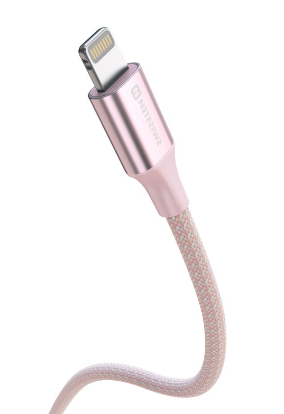 SWISSTEN DATOVÝ KABEL SWISSTEN TEXTILE II USB / LIGHTNING 1,5 M RŮŽOVÝ