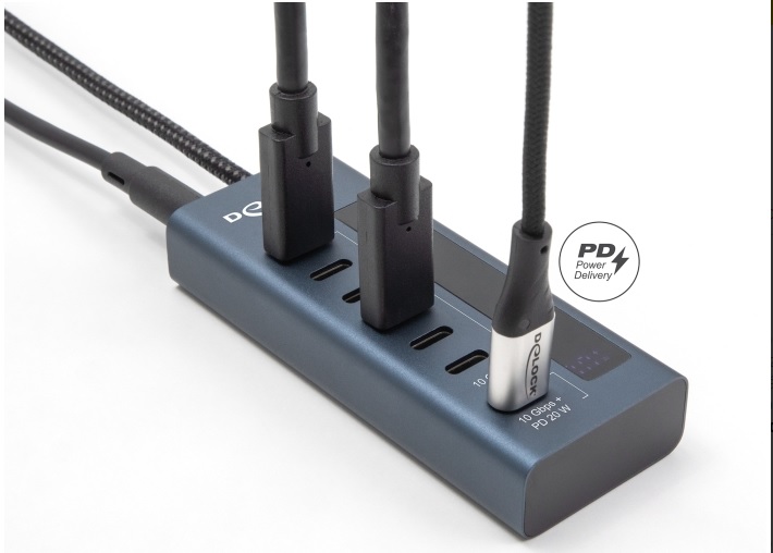 USB hub od Delocku může být připojen přes rozhraní USB Type-C™ k PC nebo notebooku. Má sedm konektory USB-C™. Lze připojit různá zařízení USB, jako například USB flash paměť, čtečku karet, externí pouzdro atd. Port USB-C™ PD 3.0 Tento port USB Type-C™ PD poskytuje výstupní výkon až 20 W. Displej LED vedle konektoru zobrazuje okamžitý napájecí výkon. Připojená zařízení jako smartphony mohou být napájena nebo data mohou být přenášena rychlostí 10 Gbps. Poznámka Alternativní režim DisplayPort (DP Alt Mode) není podporován, takže nejsou přenášeny žádné videosignály a nelze připojit žádné monitory. Technické detaily Konektor: 1 x USB 10 Gbps USB Type-C™ samec 6 x USB 10 Gbps USB Type-C™ samice 1 x USB 10 Gbps USB Type-C™ samice PD 3.0 (max. 9 V / 2,22 A) 1 x DC 12 V napájecí konektor Rychlost přenosu dat 10 Gbps Hostitelské zařízení nelze napájet přes port PD 6 x LED indikující 1 x indikátor napájení Robustní kovové pouzdro Barva: půlnoční modř Plug & Play Délka kabelu: cca. 60 cm Rozměry (DxŠxV): cca. 99 x 39 x 17 mm Specifikace napájecího zdroje Vstup: AC 100 ~ 240 V / 50 ~ 60 Hz / 0,8 A Výstup: 12,0 V / 3,0 A / 36,0 W Zem vně, plus uvnitř Rozměry: vnitřní: o cca. 2,5 mm venkovní: o cca. 5,5 mm délka: cca. 10 mm Systémové požadavky Android 11.0 nebo vyšší Chrome OS Linux Kernel 6.2 nebo vyšší Mac OS 13.1 nebo vyšší Windows 10/10-64/11 iPad Air (4-mé generace) nebo vyšší iPad Pro (3-mé generace) nebo vyšší Surface Pro 7 Zařízení s volným portem USB Type-C™ nebo volný port Thunderbolt™ 3 nebo Thunderbolt™ 4 Obsah balení Hub USB 10 Gbps Externí napájecí zdroj Uživatelská příručka Balení Kartonová krabice |