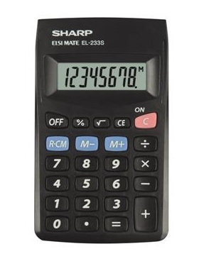 Kapesní kalkulačka s kompaktním designem, velkým LCD displejem (8 číslic), výpočty odmocniny a procent.